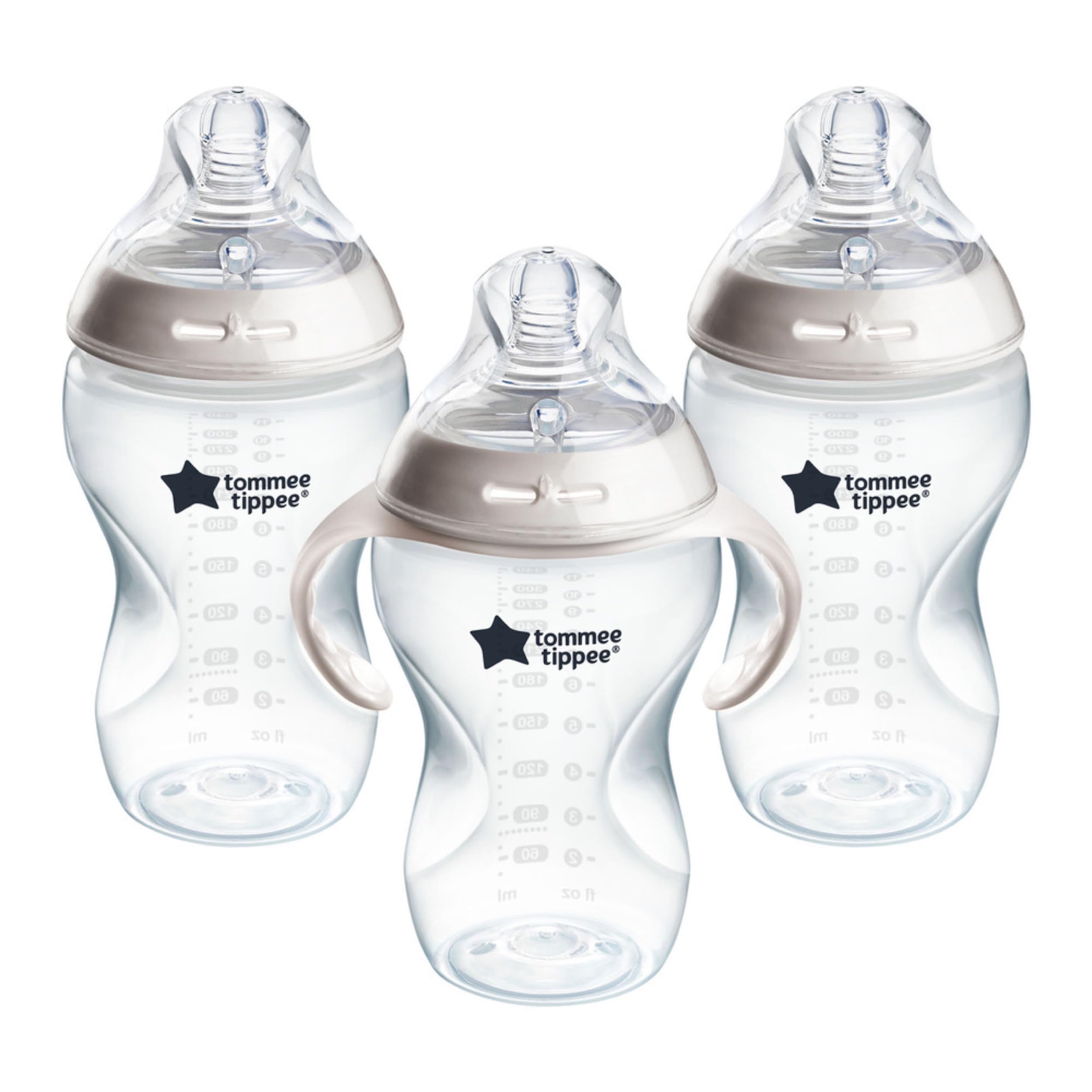 Tommee Tippee Natural Start Baby Bottle, 11oz, Thicker Feed, Breast-Like Nipple For Babies 6 Months+, Clear, 3 Count