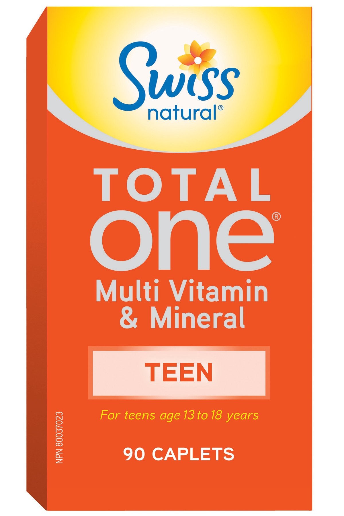 Swiss Natural Total One Teen Multi Vitamin & Mineral | Calcium, Biotin & Vitamin B12 | Daily Maintenance for Overall Health | No Preservatives and Dairy | 90 Caplets