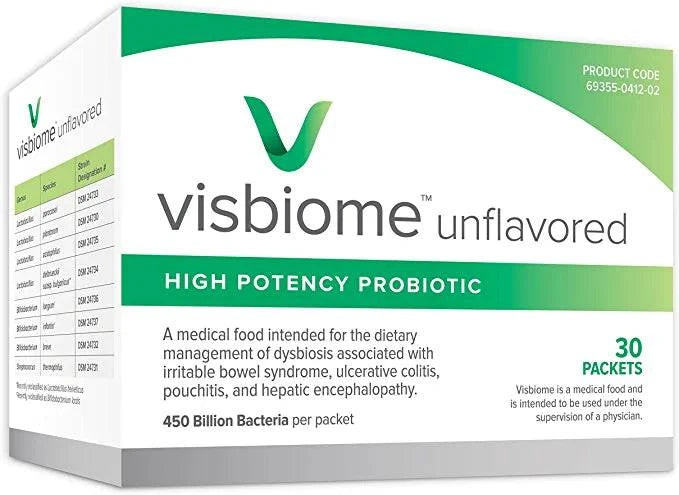 Visbiome® High Potency Probiotic 450 Billion Live Bacteria - 30 Packets Unflavored Powder- Shipped Cold in Recyclable Cooler with Temperature Monitor
