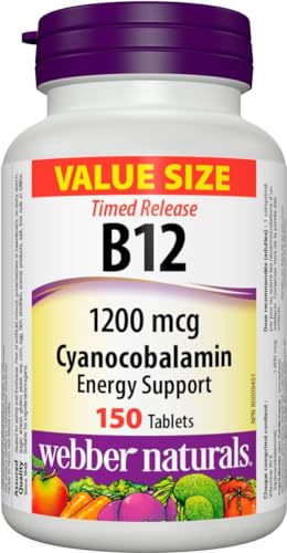 Webber Naturals Vitamin B12 Cyanocobalamin 1,200 mcg, Timed Release, 150 Tablets, Supports Energy Production and Metabolism, Gluten Free, Non-GMO, Vegan