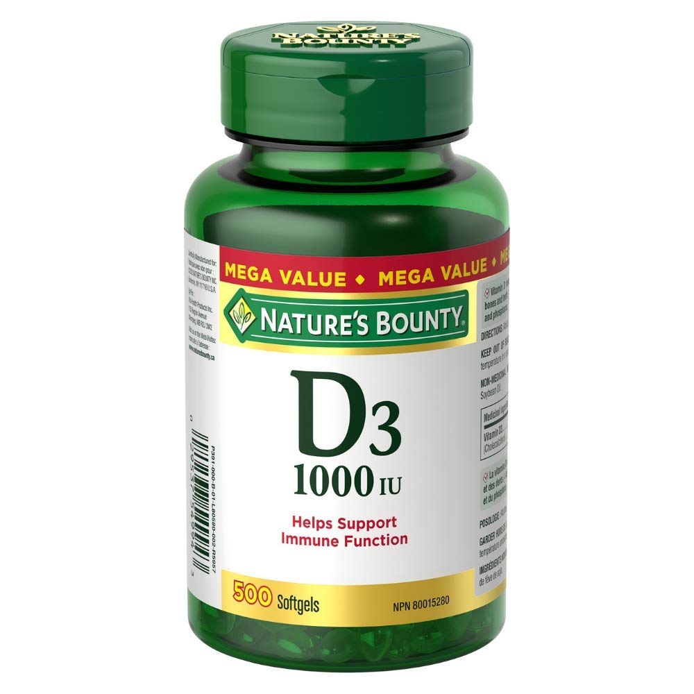 Nature's Bounty Vitamin D3 Pills and Supplement, Helps Support Immune Function, 1000iu, 500 Softgels