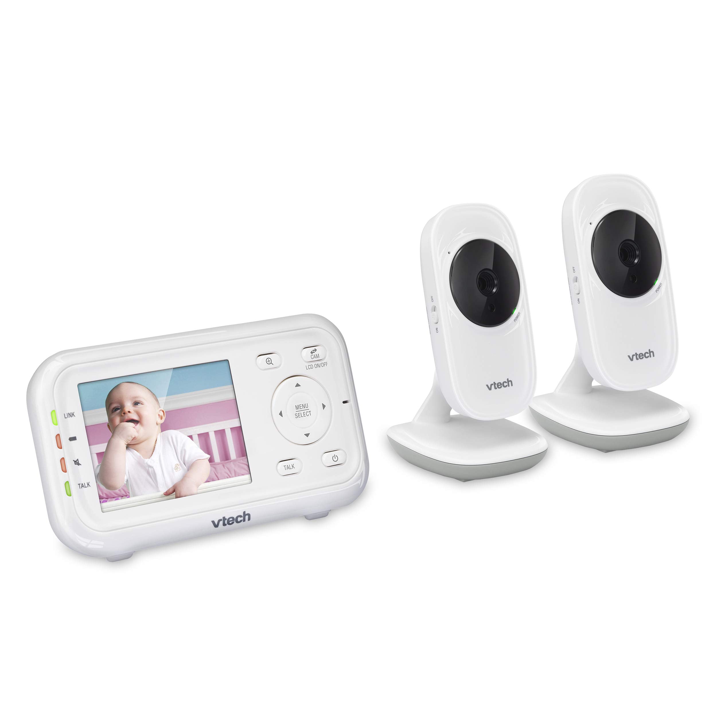 VTech VM3252-2 Digital Video Baby Monitor with 2.8" LCD 2 Cameras and Automatic Night Vision, 1 Count, White