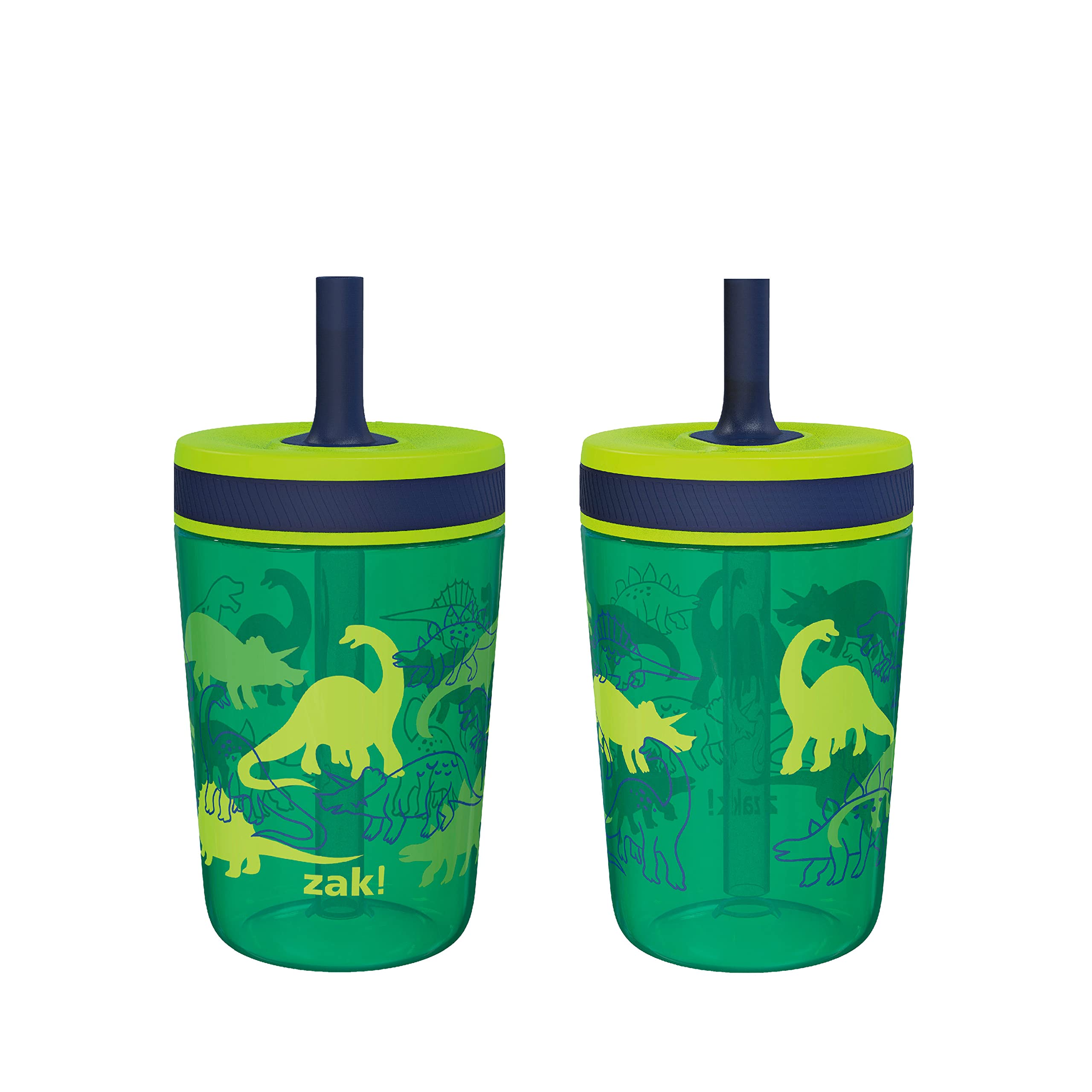 Zak Designs Kelso 15 oz Tumbler Set, (Dino Camo) Non-BPA Leak-Proof Screw-On Lid with Straw Made of Durable Plastic and Silicone, Perfect Toddler Cup Bundle for Kids (2pc Set)