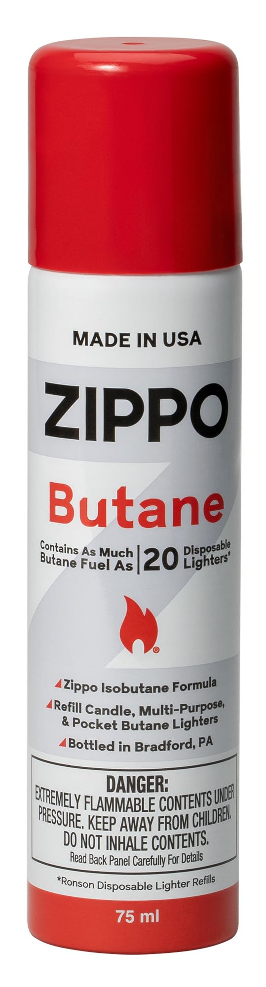 Zippo Premium Butane Fuel will keep your flex necks, candle lighters, and outdoor utility lighters working at their best. Zippo Premium Butane Fuel comes in a 75 ml can.