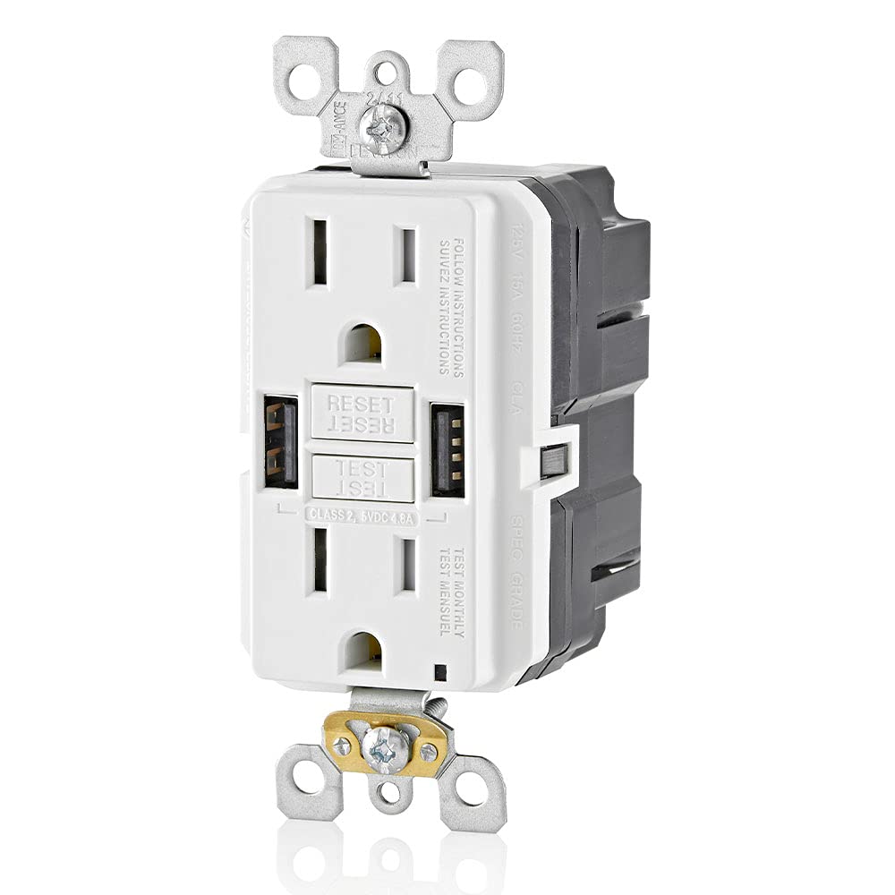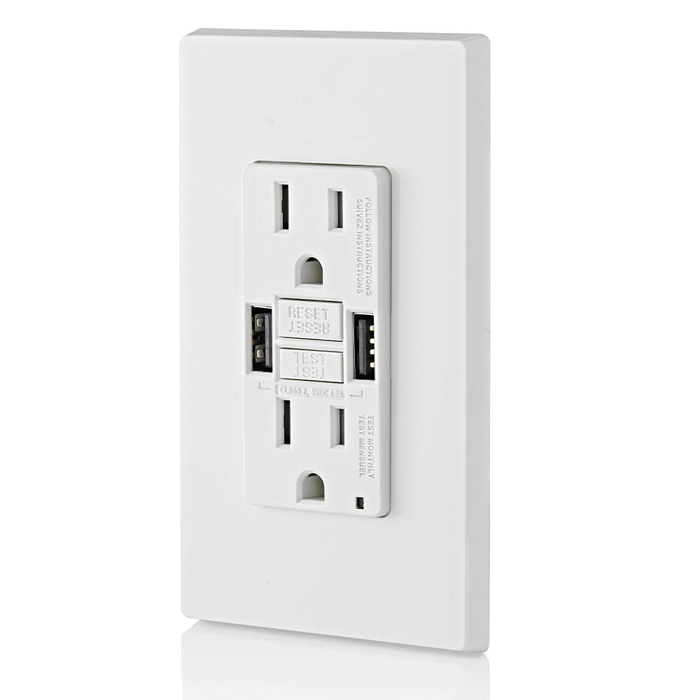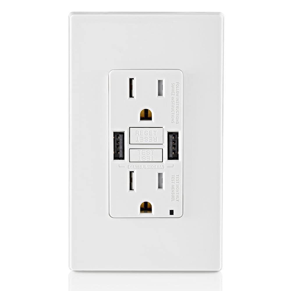 15A SmartlockPro GFCI Combination 24W(4.8A) Type A/A USB in-Wall Charger Outlet, White