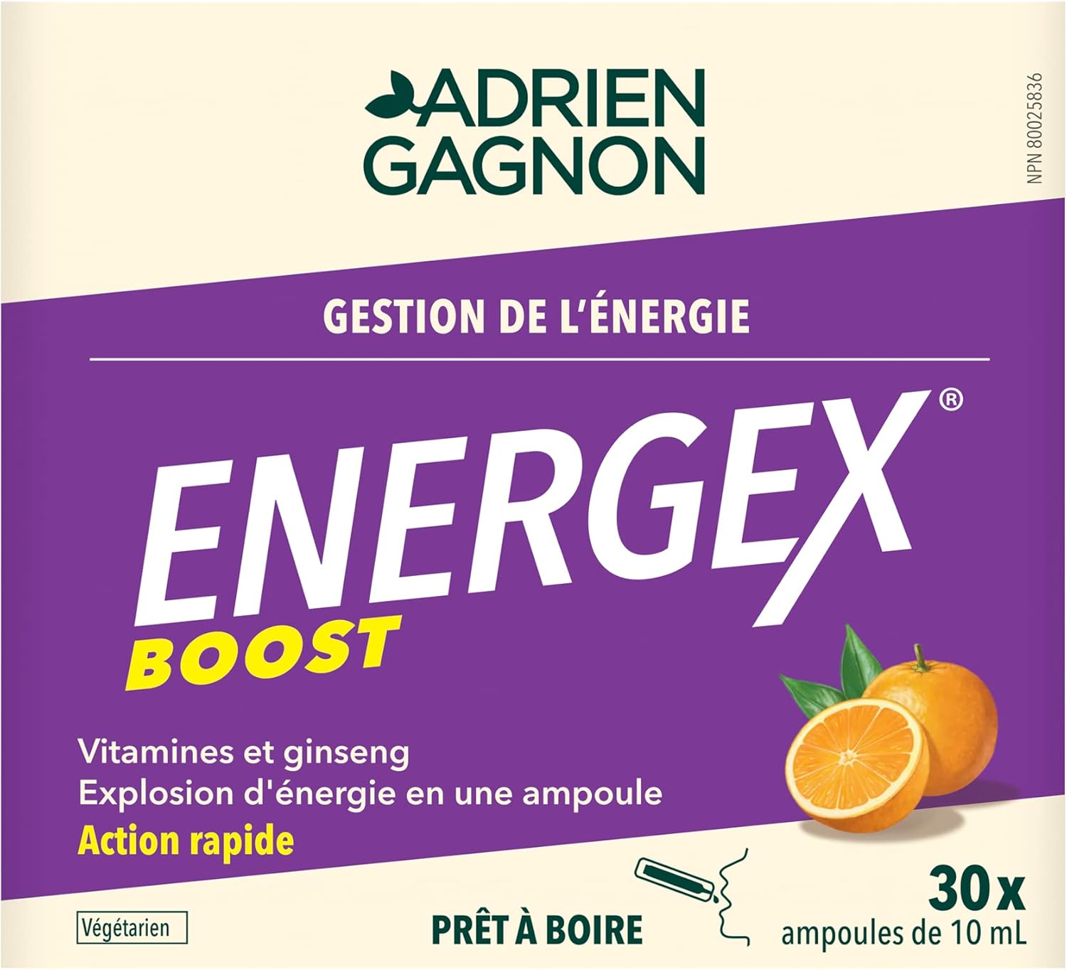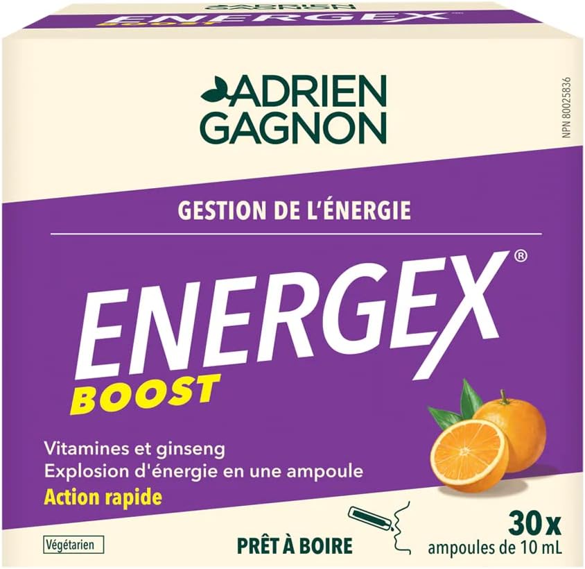 Everyone is looking for ways to increase their energy level and combat temporary fatigue. Energex Boost ampoule is THE formula for intense periods at work and at home. This combination of B vitamins and ginsengs helps you go through your day without missing a thing! The kola nut brings a little touch of caffeine. 1 ampoule, to be directly drink or mixed in water or fruit juice. Ideal for people who are looking for a healthy alternative to energy drinks or coffee! Available in 2 flavors Orange or Caramel