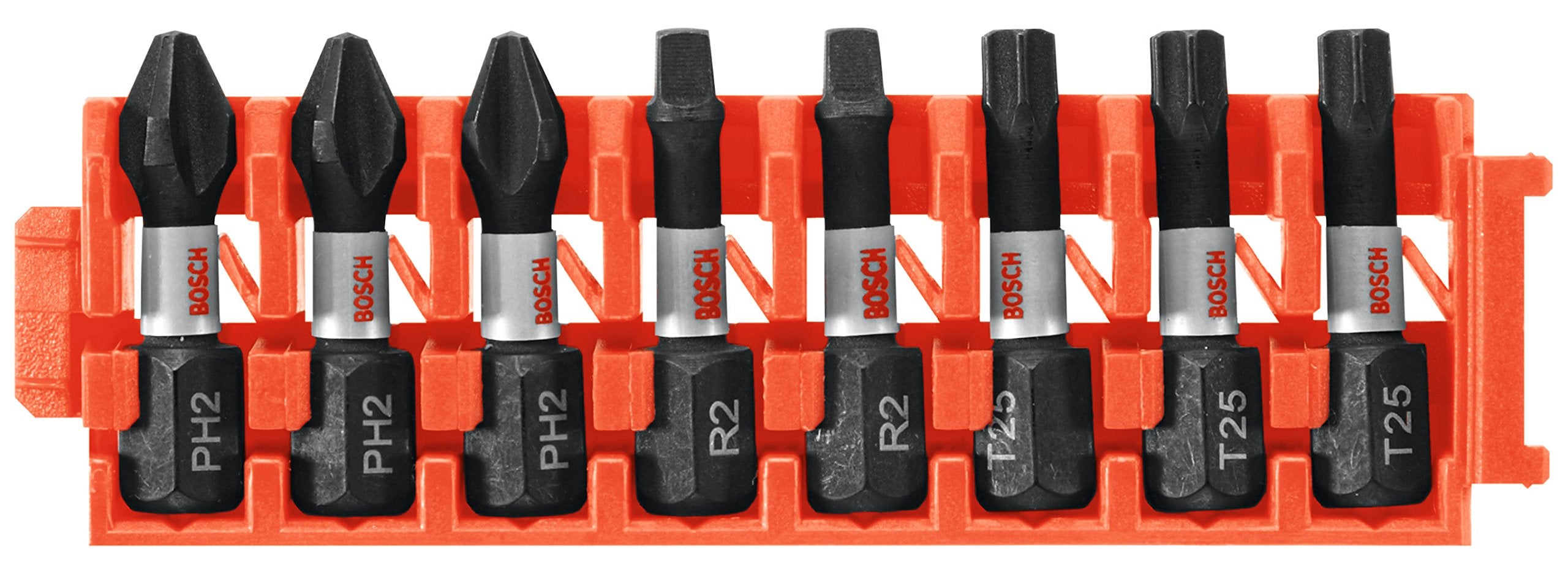 Bosch CCSV108 8Piece Impact Tough Phillips, Square & Torx 1 In. Insert Bits with Clip for Custom Case System