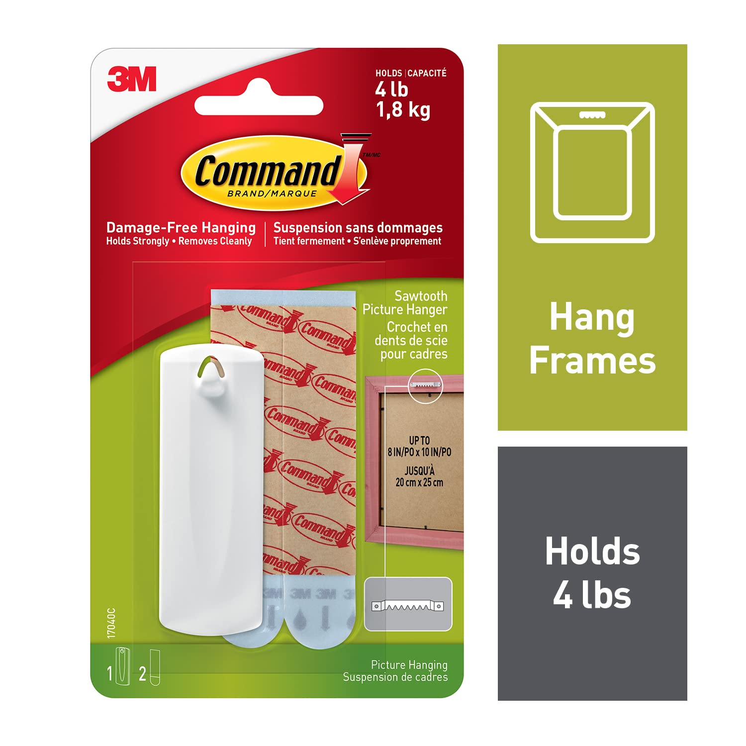 Command Sawtooth Picture Hanging Hooks, 1 Hanger 2 Large Strips, White - Damage-Free, 17040C