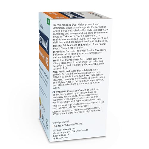 FeraMAX Pd Maintenance 45 Iron Supplement - Great Tasting Orange Flavor Iron Supplement for Prevention of Iron Deficiency - 45mg of Elemental Iron per Chewable Tablet