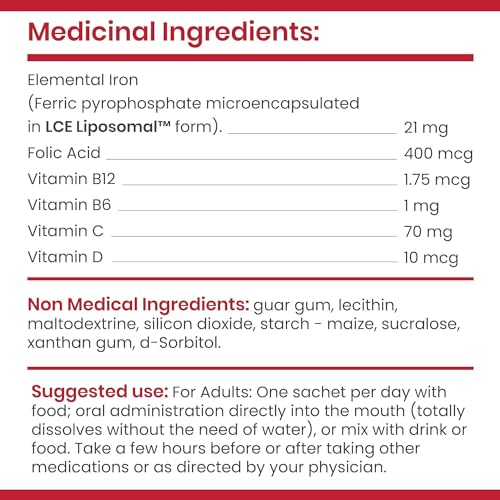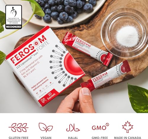 Ferosom Forte LCE Liposomal Iron – Iron Supplement Powder Gentle on the Stomach – 21g Elemental Iron with Vitamin B12, B6, D, C, Folic Acid – Berry Flavor Powder or Liquid Iron Drink, 20 Vegan Iron Sachets