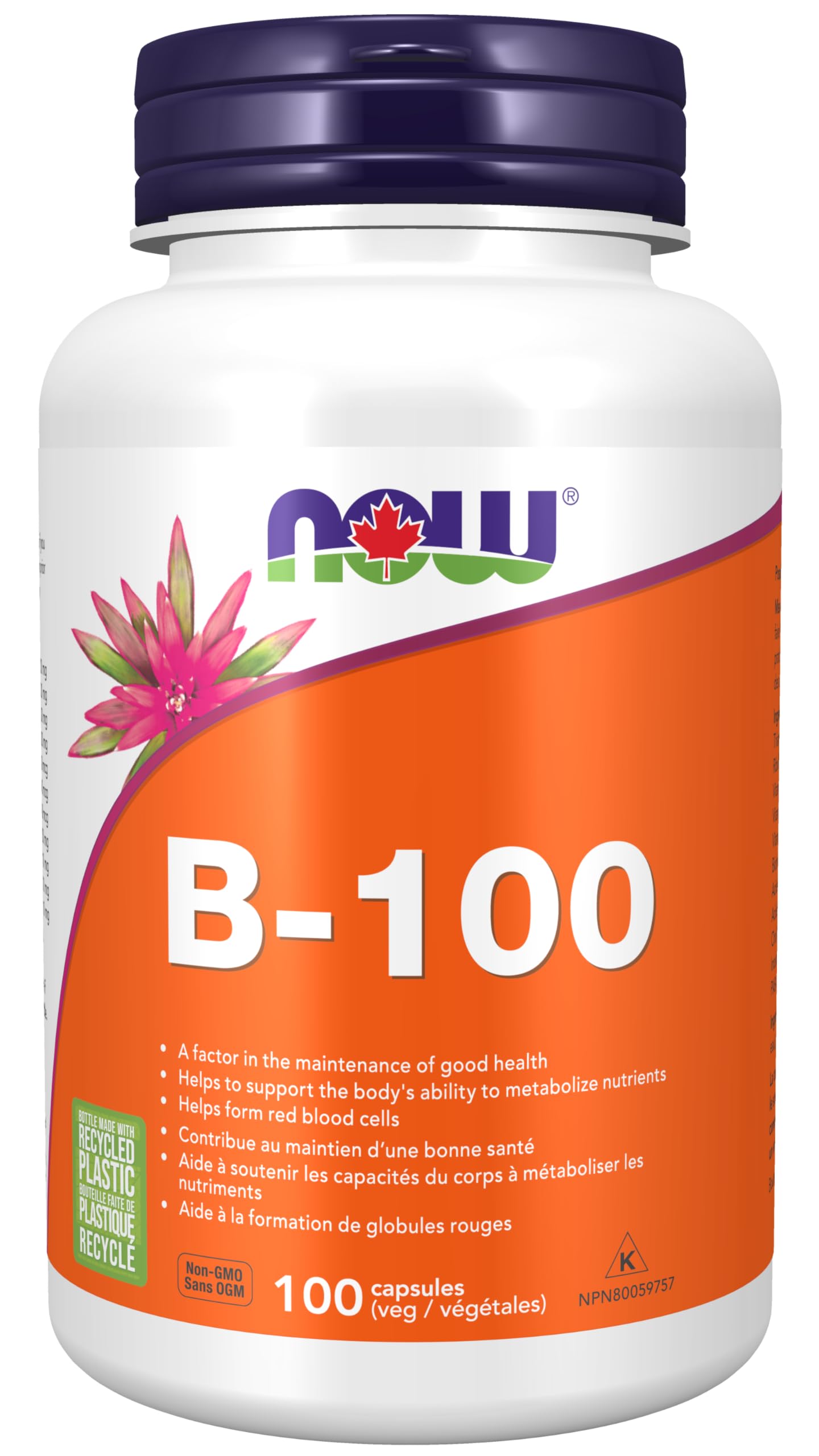 NOW Supplements, Vitamin B-100, Energy Production, Nervous System Health, 100 Veg Capsules