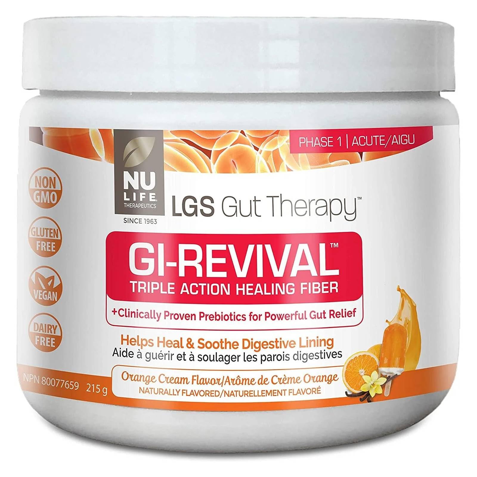 NuLife Therapeutics by NuLife Vitamins Nulife Therapeutics LGS Gut Therapy Gi-Revival Triple Action Healing Fiber (Formerly Healing Fibre) 215 Gram Orange Creme Flavor